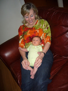 Honey and Aunt Mo came to visit, although Mo couldn't hold little guy the first time cause we were scared she had swine flu :) She and Barron came back with a swing, though, so we let her... Aunt Ronna held Jett and made friends with Jade!